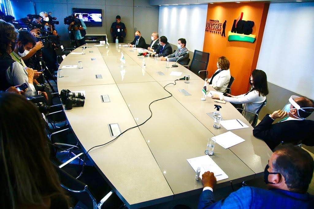 Os senadores Rose de Freitas e Dario Berger participaram de forma semipresencial.